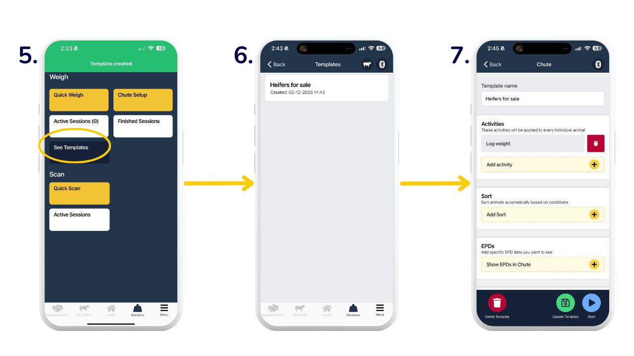 5. If you 'Save as template', you will be back on the Sessions page. When you're ready to begin a chute session with a template, click 'See templates'.