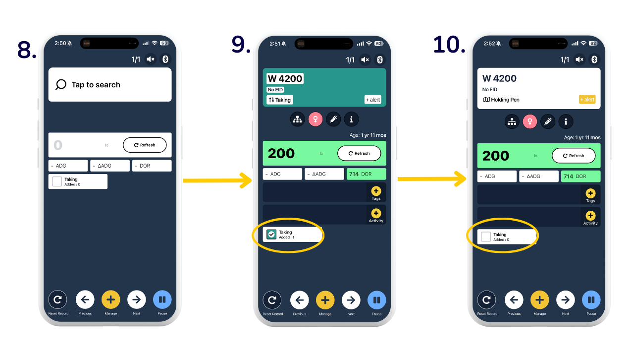 8. Check that your Sort/s are displaying on the session screen and begin processing your cattle.