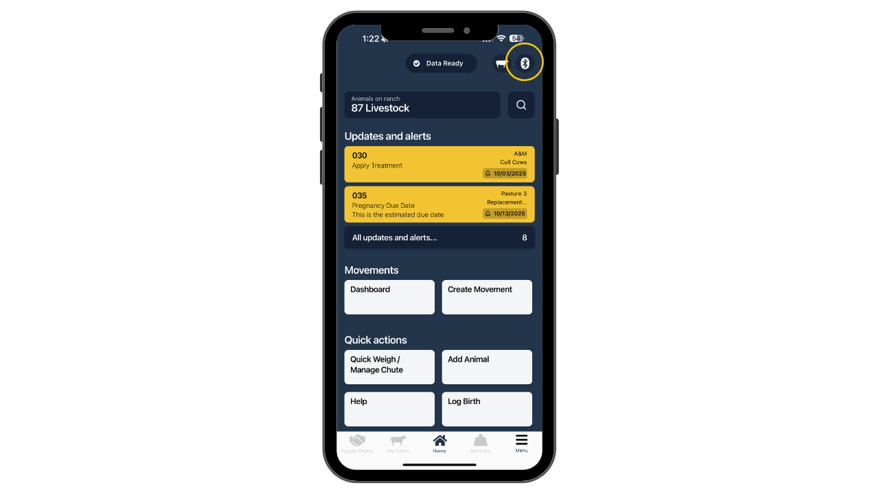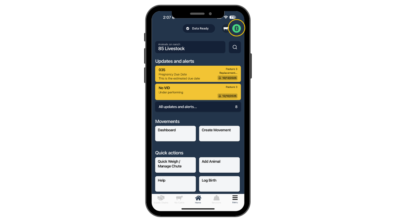 1. In the Breedr app, navigate to the Bluetooth button in the top right corner of your screen, and click it.![]()