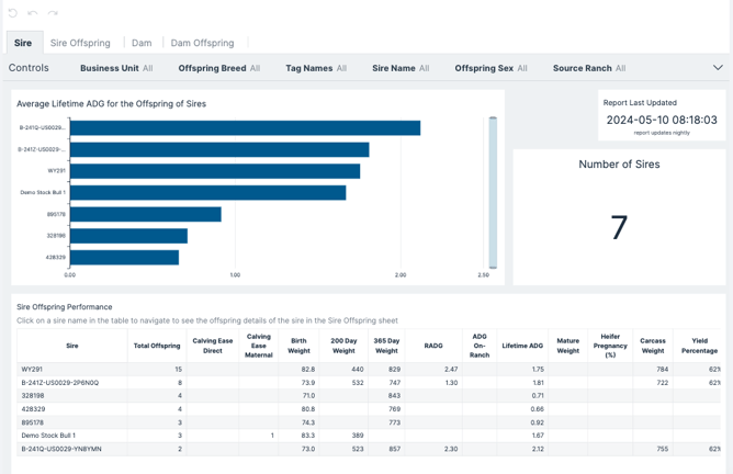 The Sire and Dam performance report evaluates the performance of the sire and dams on your ranch. When you log the birth of an animal, a series of questions are asked regarding the ease of calving. This information is then displayed in this report.