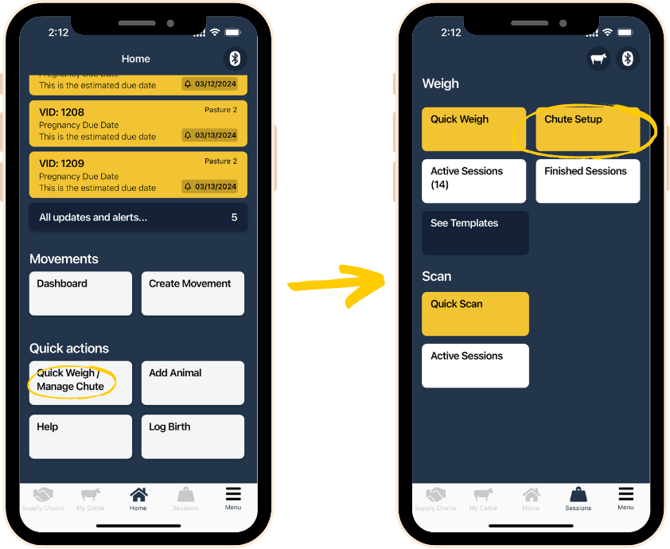 With Chute Setup, you can set parameters to sort animals into Groups or Locations based on conditions such as weight, sex, or date on ranch.
