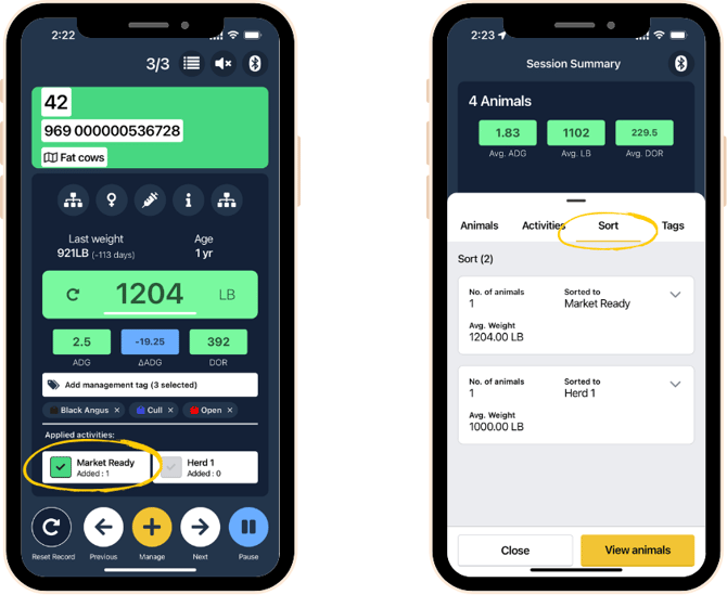For example, if sorting for a weight condition, you could have your animals sorted into groups that are ready for market and groups that are undersized.